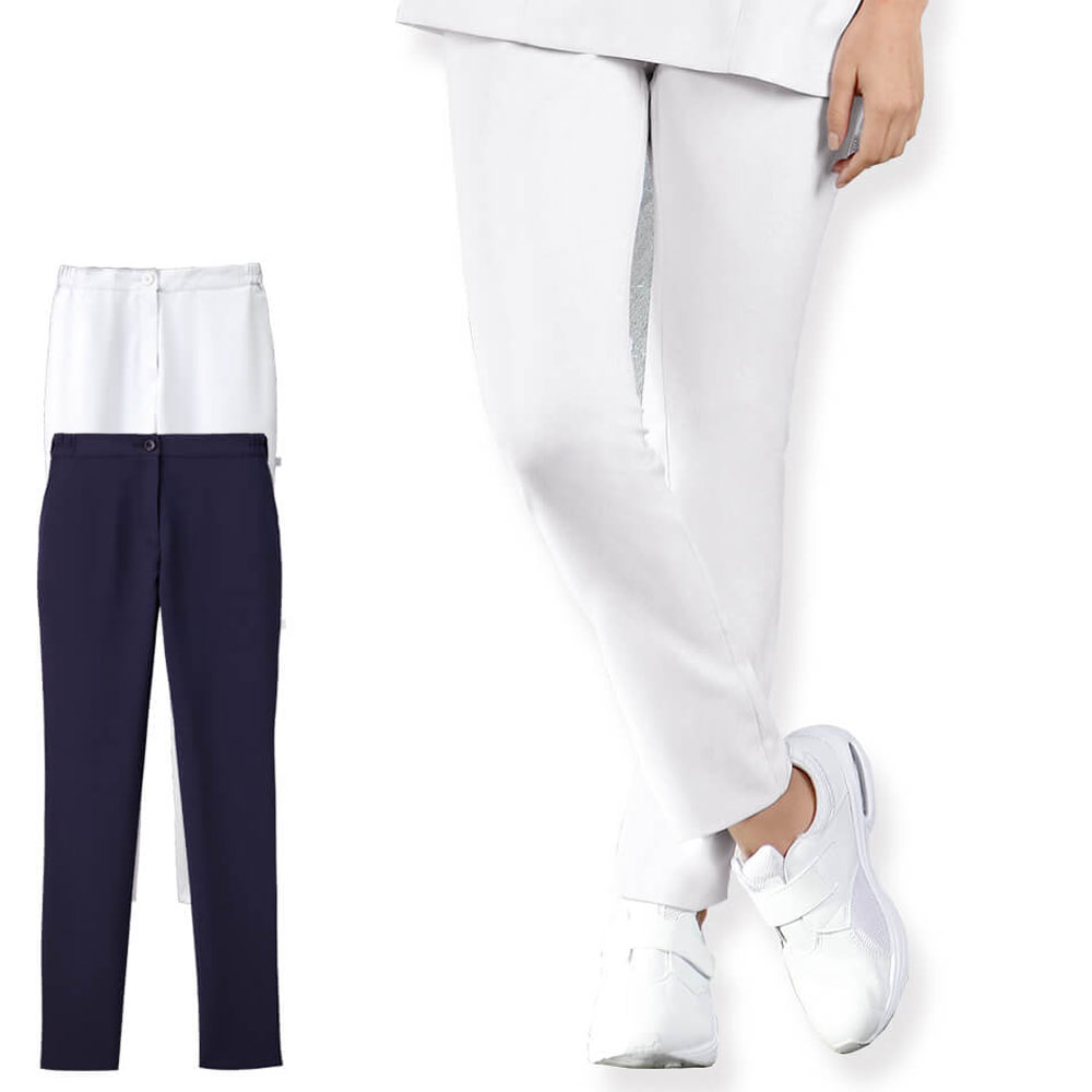 スクラブシリーズ 白衣 ストレッチで動きやすい すっきりシルエット 脇ゴム レディース パンツ 自重堂 JCWH12012