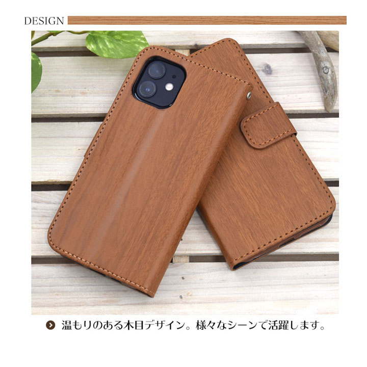 iPhone12mini/5.4インチ ウッドデザイン手帳型ケース 製品特徴 木目デザインがきれいな手帳型ケースです。