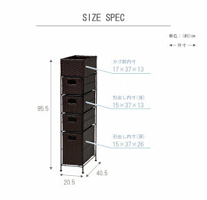 ランドリー収納カテゴリはこちら 【キーワード】 人工ラタン ランドリーチェスト スリム 4段 引き出し 幅20 完成品 送料無料 トイレラック すき間収納 奥行40 バスケット カゴ 洗面所 収納 籐 おしゃれ ホワイト ブラウン 通気性